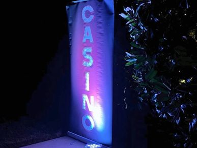 Stream casino-themed or popular music played on our portable sound system. We can also play from your own streaming device. This option SCO includes a PA system that can be helpful for