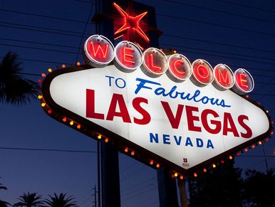 An 8x10' Las Vegas skyline creates the perfect backdrop. Our easy-to-use booth texts pictures directly to the guest's phone and